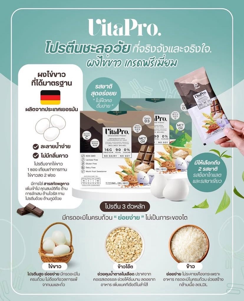 - 🍫 Vita Pro Chocolate – โปรตีนไข่ขาวที่จริงใจ
