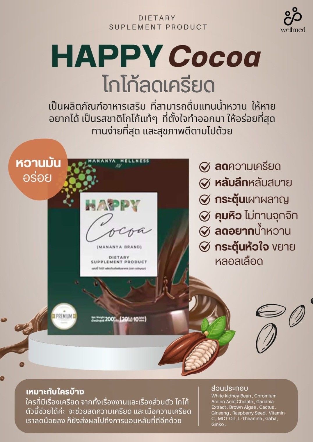 - ðŦ Happy Cocoa āđāļāđāļāđāļāļļāļĄāļŦāļīāļ§ āļĨāļāđāļāļĢāļĩāļĒāļ (āļāļĨāđāļāļ 10 āļāļāļ)